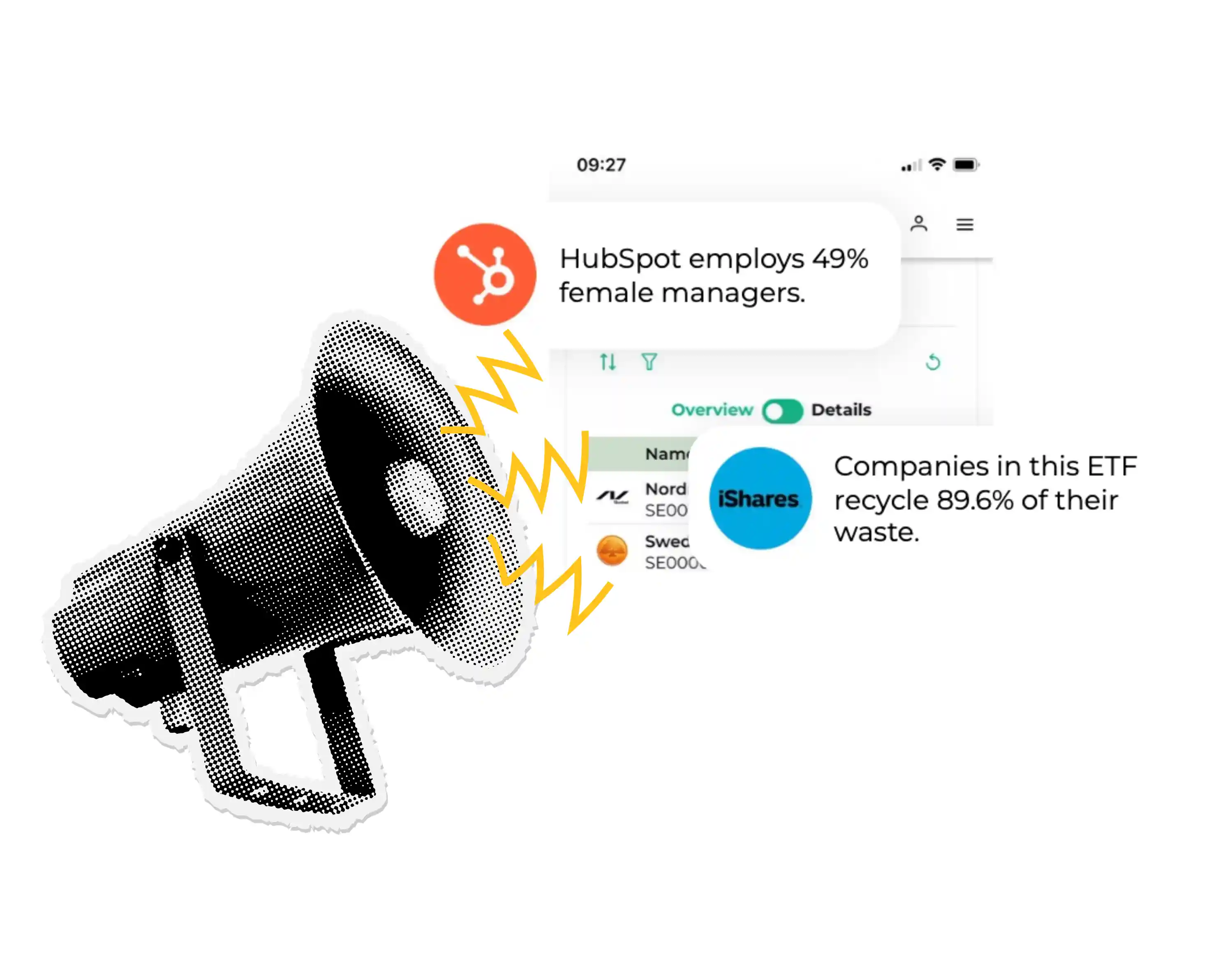 „Top 10 klimafreundliche Unternehmen“ oder „Gender Diversity Leaders“ – zum Entdecken, Swipen, Handeln.